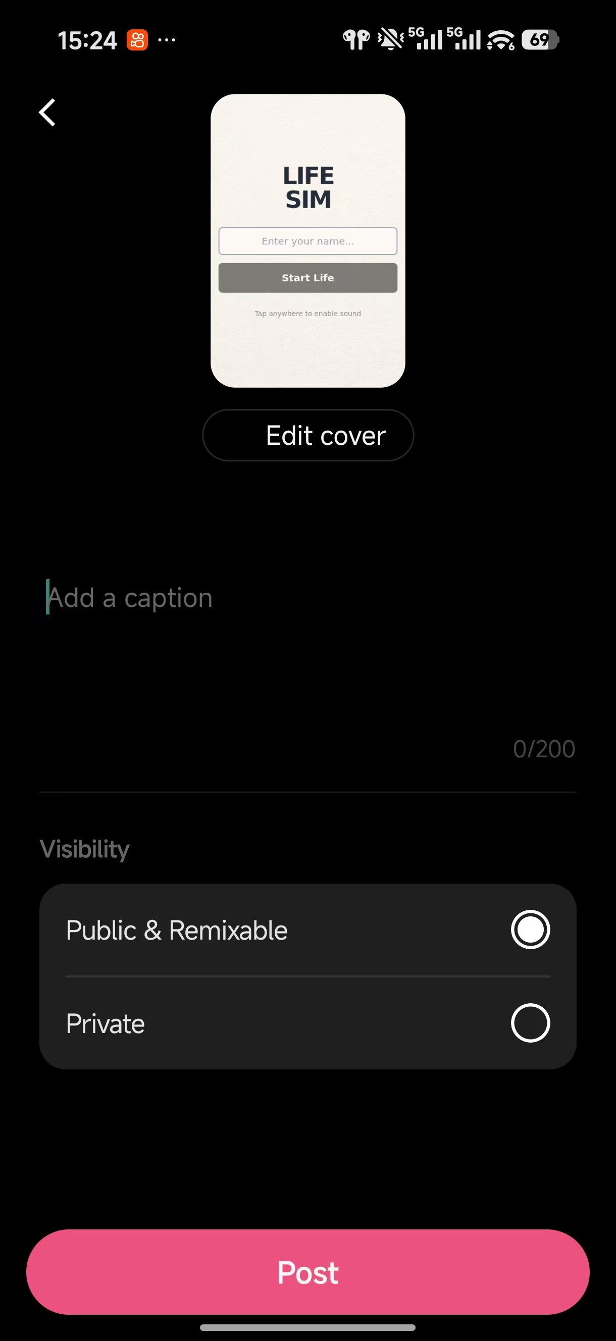 选取封面、输入描述,点击发布。